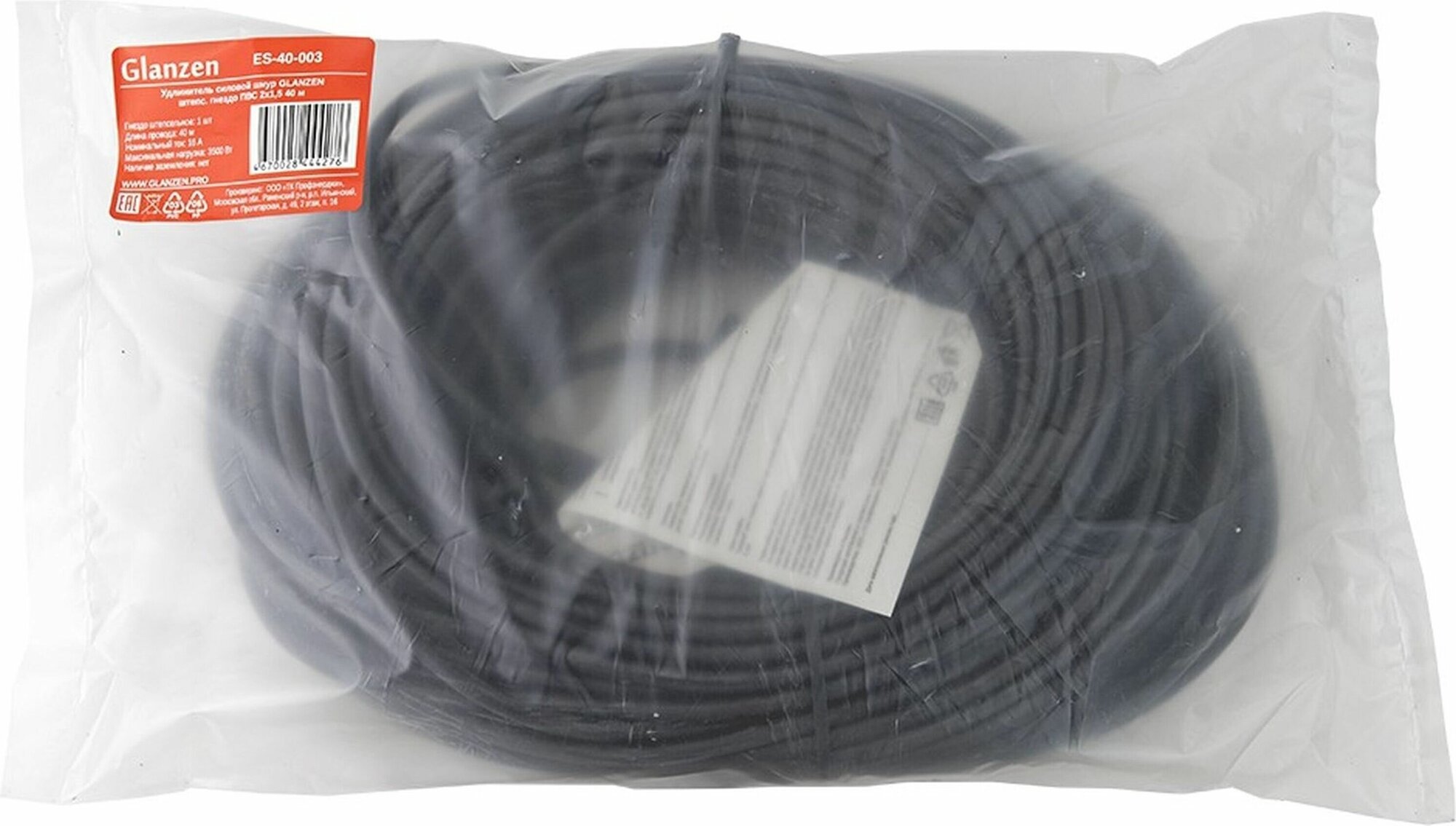 10 цен на Силовой удлинитель Glanzen шнур штепсельное гнездо ПВС 2x0,75 20 м арт. ES-20-001 00-00006698