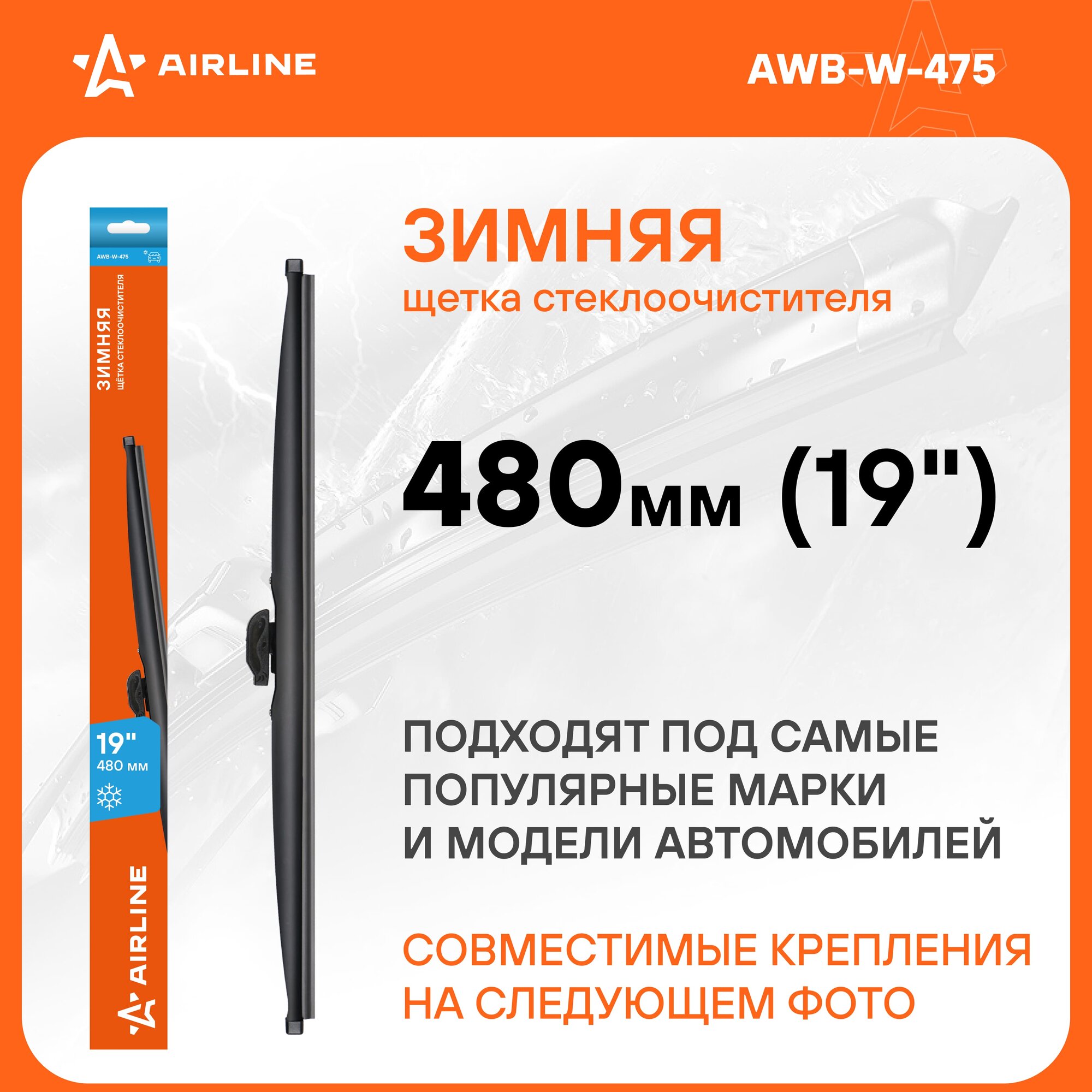 "Щетка стеклоочистителя 475 мм (19"") зимняя awb-w-475" Airline AWBW475 информация: