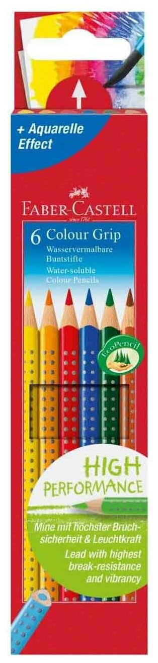 Набор цветных карандашей Faber-castell "Colour Grip" с акварельным эффектом,6 цветов, в картонной коробке 634 ₽