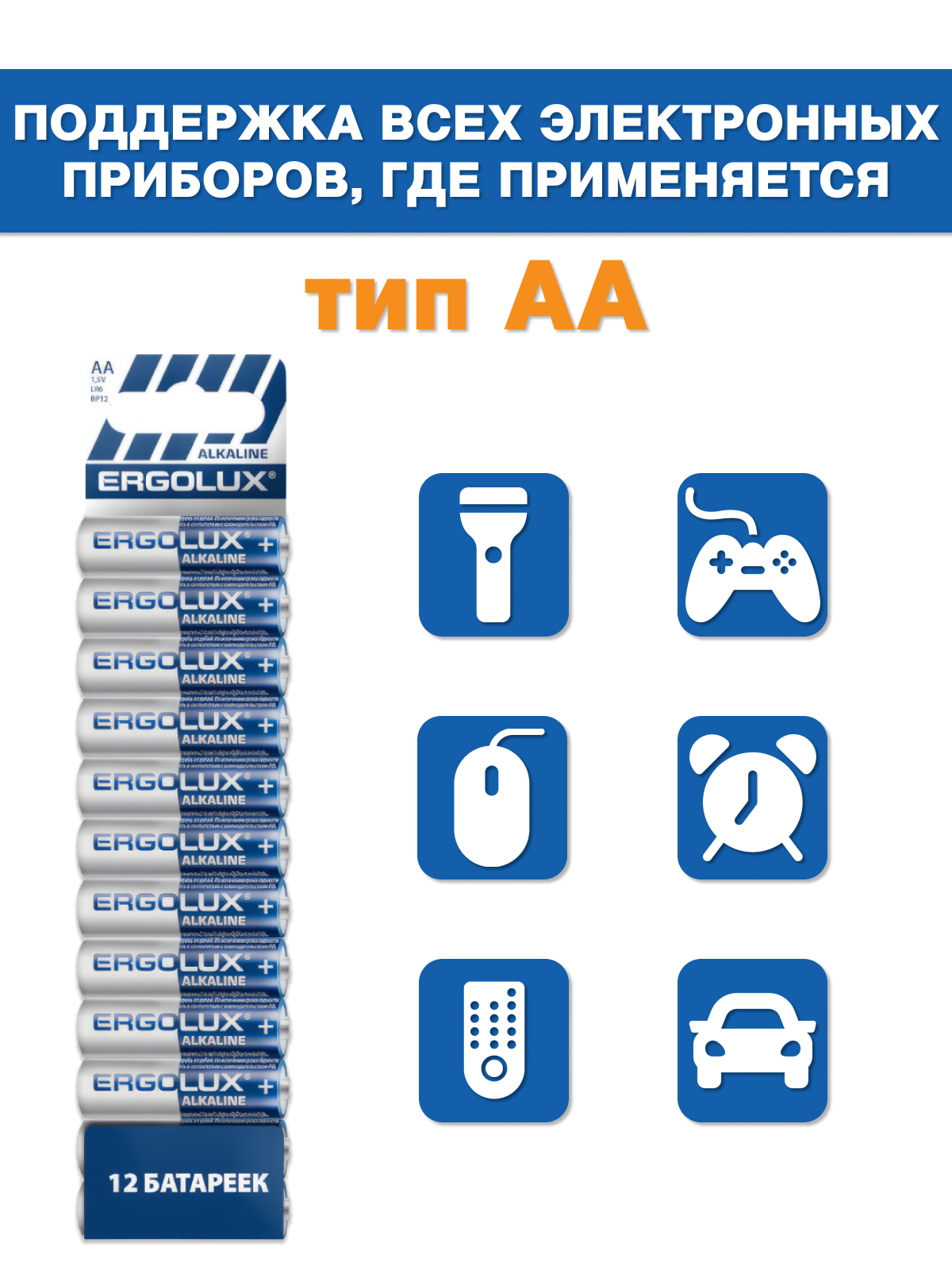 Батарейки AA Ergolux Alkaline, модель LR6 информация: