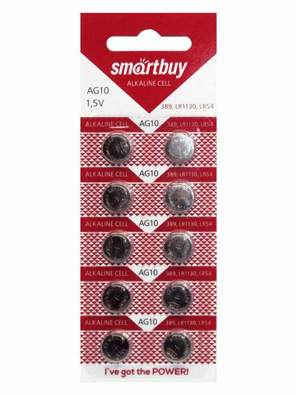 Батарейка LR54 (AG10, LR1130, 389) 1.5V SmartBuy Blister, 10 шт