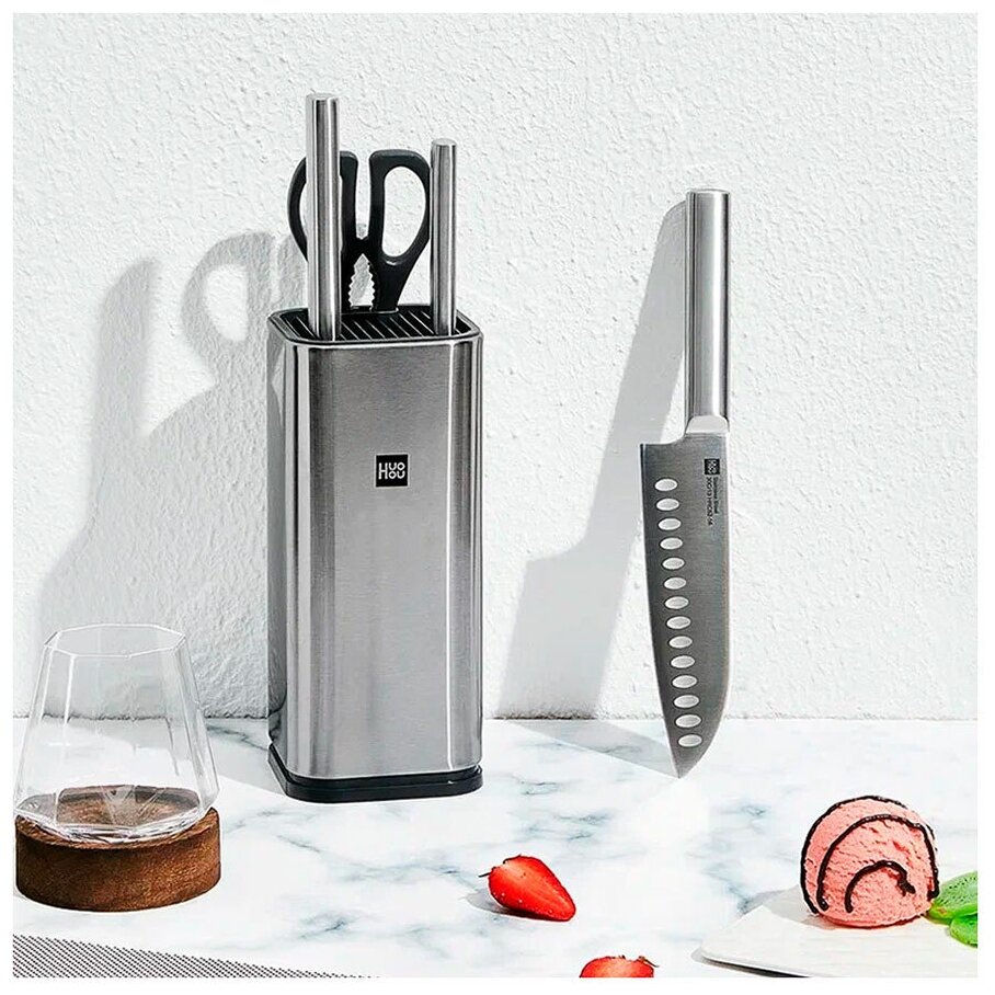 Набор кухонных ножей на подставке+ножницы HUOHOU Stainless Steel Kitchen Knife Set (HU0095), серебристый, 5 предметов