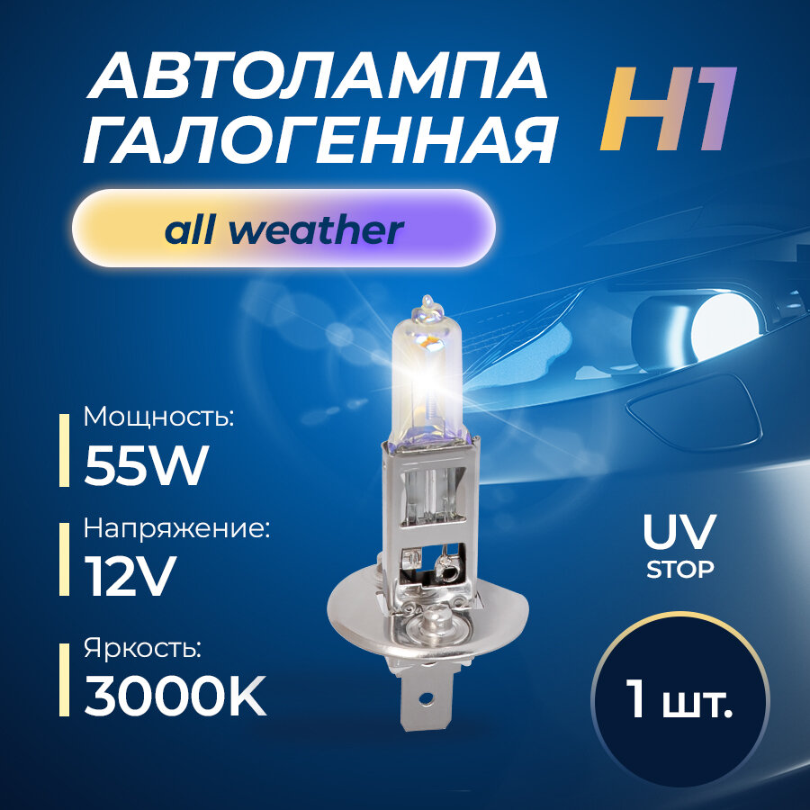 Автолампа H1 12v55w (P14,5s) Pro All Weather Блис