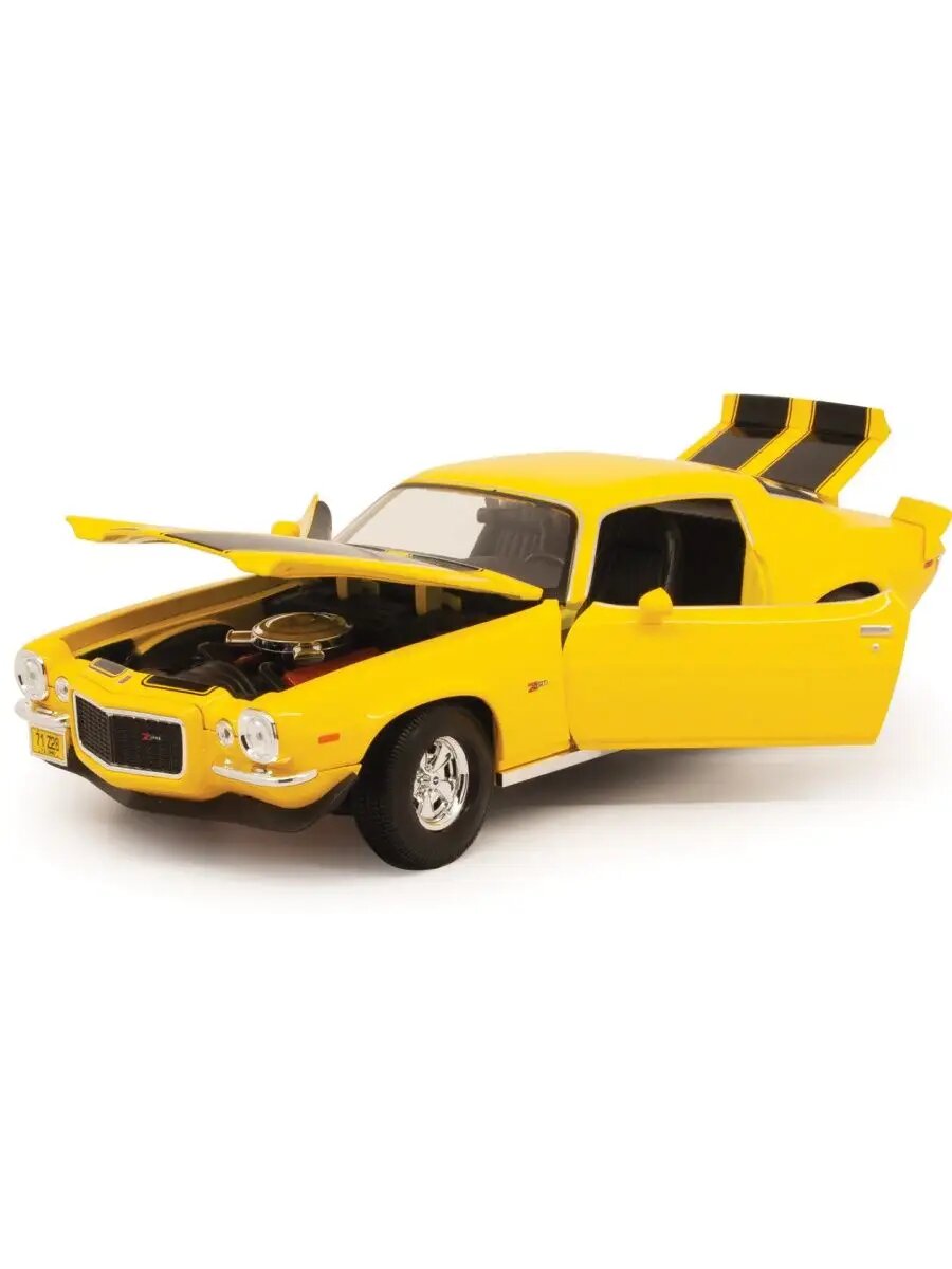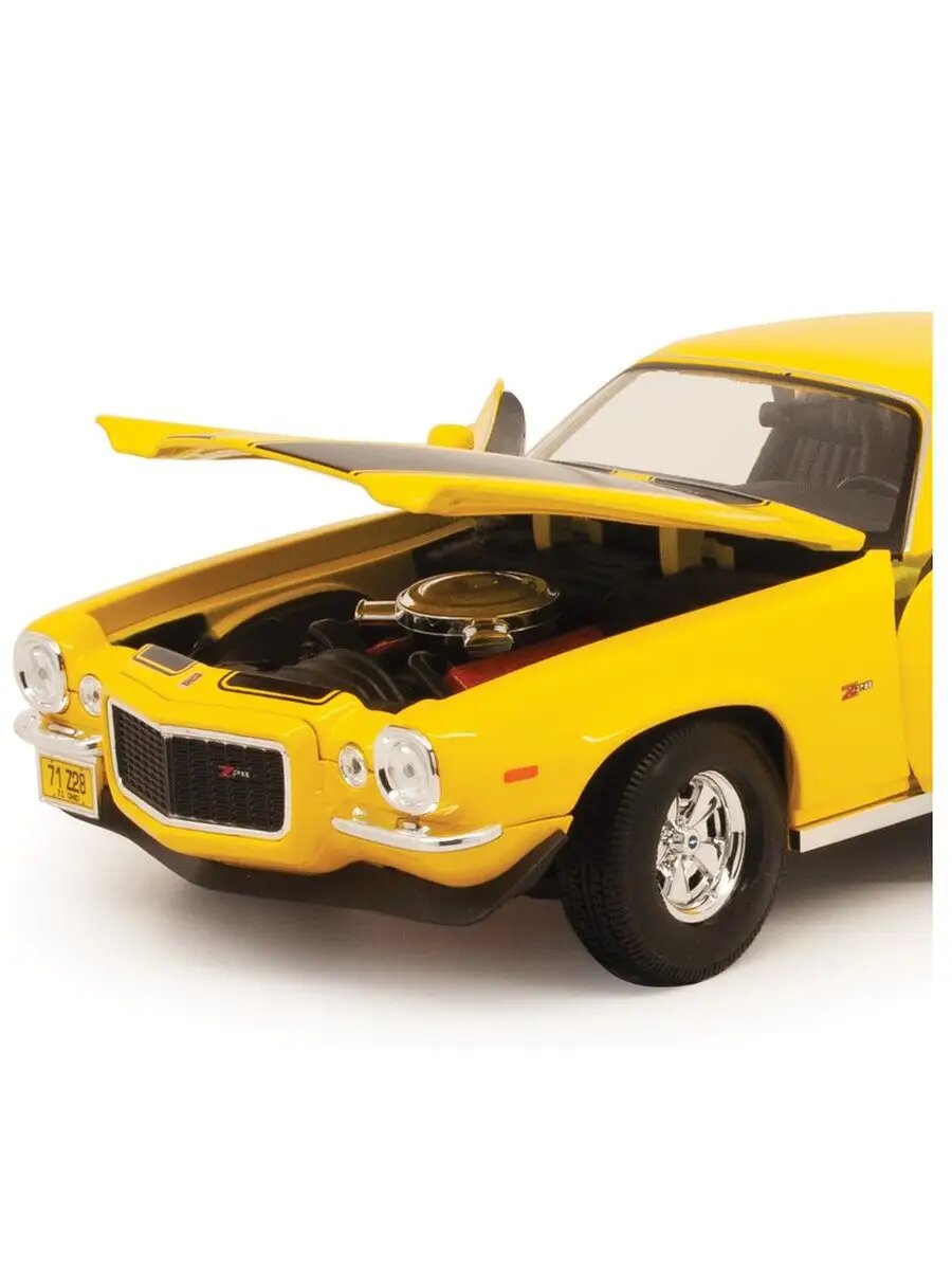 Машинка металлическая Maisto Chevrolet Camaro 1971, открывающиеся двери, капот и багажник, вращающиеся колеса, коллекционная модель Маисто Шевролет Камаро 1:18 желтая, 31131YL
