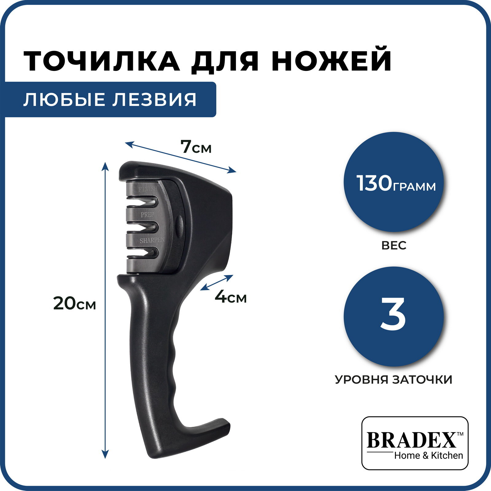 Отзывы на Точилка для ножей Bradex, 3 уровня заточки, 20,5x7,5x4,4 см, черная .