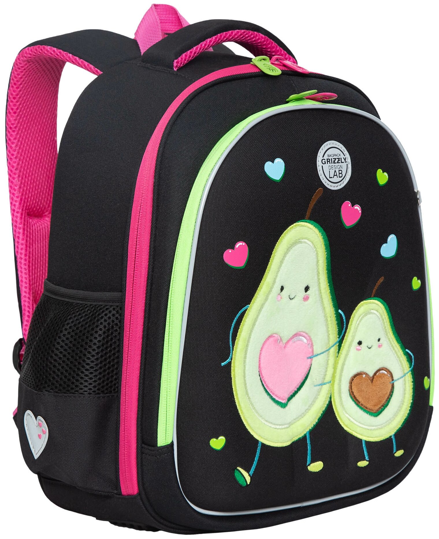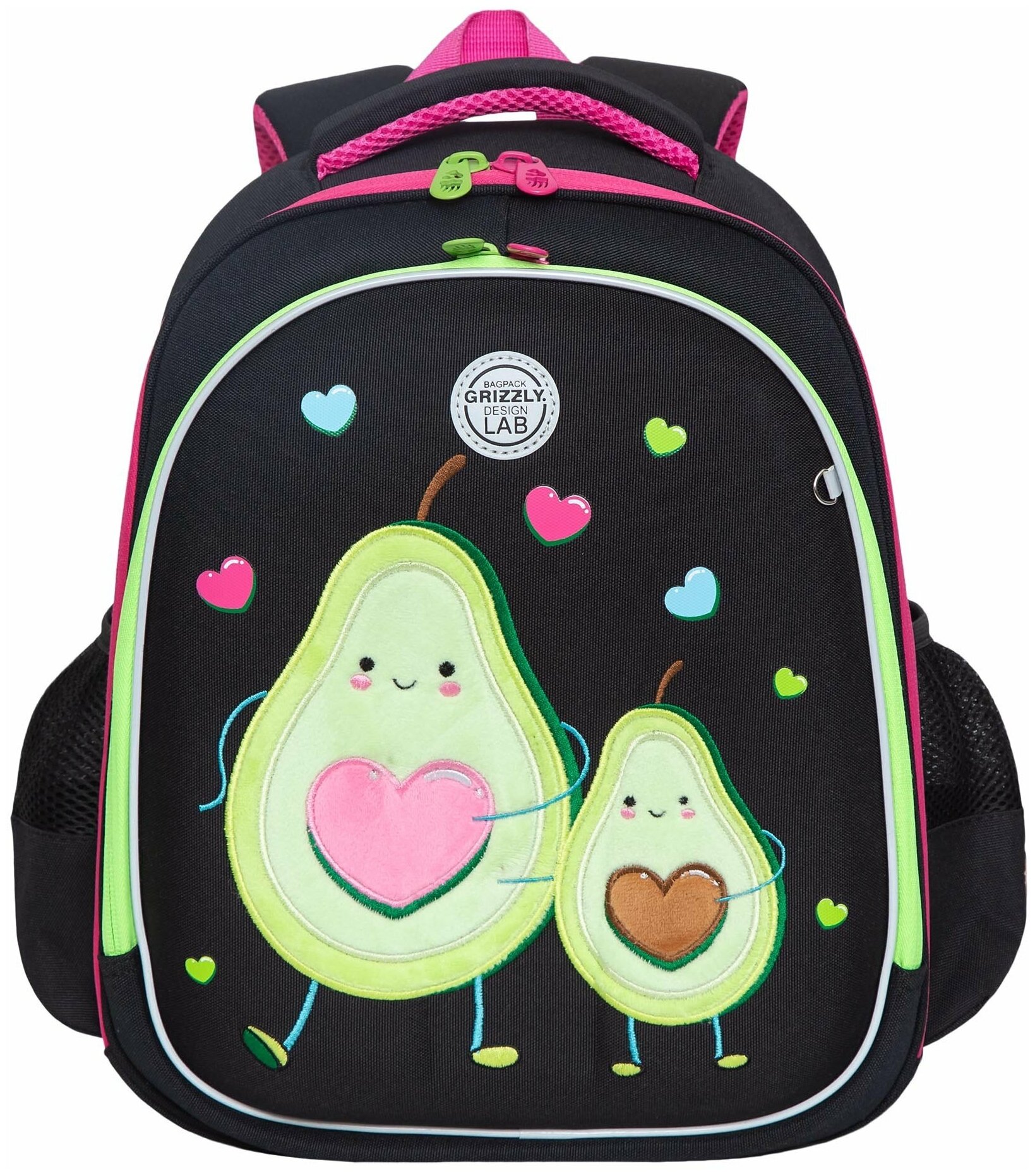 Ранец школьный GRIZZLY, анатомическая спинка c брелоком, для девочек, "AVOCADO LOVE"