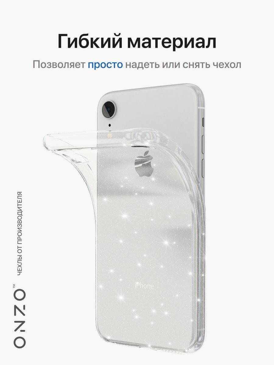 Чехол для iPhone XR / Чехол на Айфон XR, серебристый, с блестками, ONZO