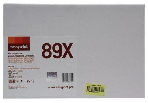 10 цен на Лазерный картридж EasyPrint LH-CF289X_NC (без чипа) для принтеров HP, черный (black).