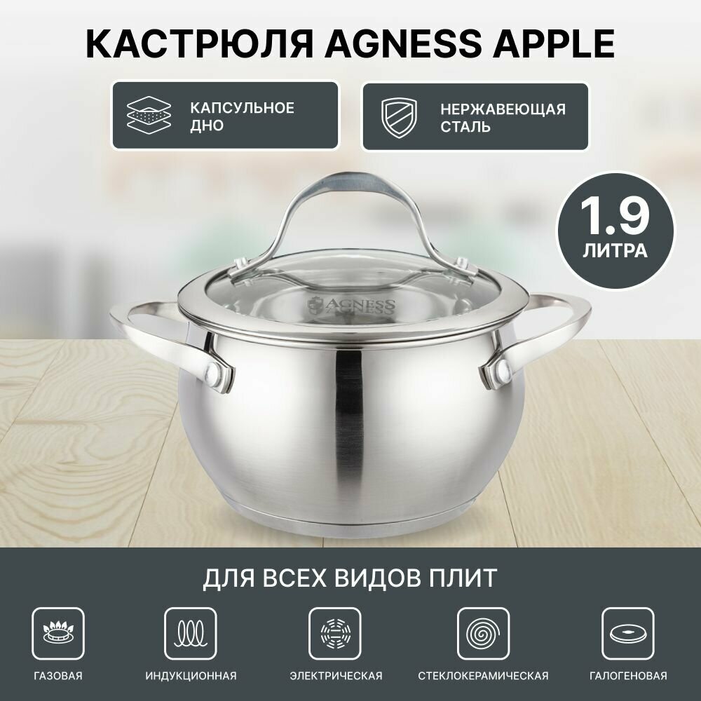 Кастрюля 937-352 agness со стеклянной крышкой серия apple 1,9 л 3 360 ₽