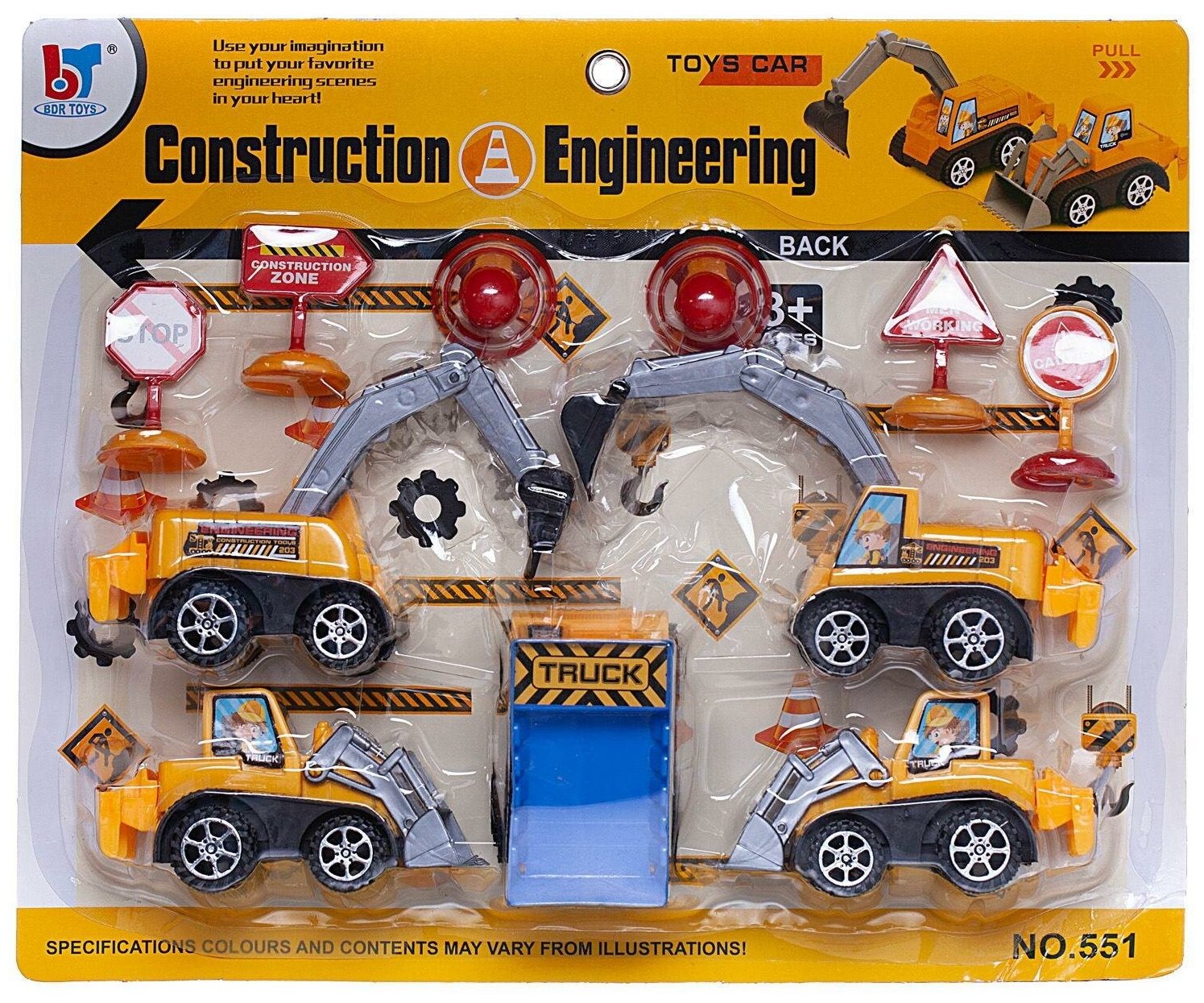 Игровой набор Junfa Строительная техника (5 инерционных машинок и дорожные знаки) WZ-17132