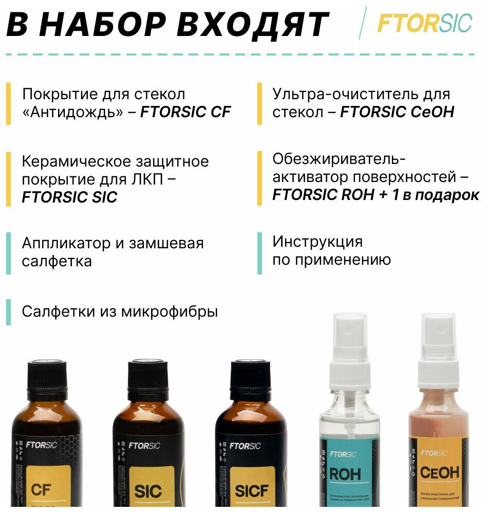 10 цен на Набор "FTORSiC SSC" Все включено. Профессиональная защита кузова, зеркал, стекол автомобиля длительного действия Полироль автомобильная фторсик