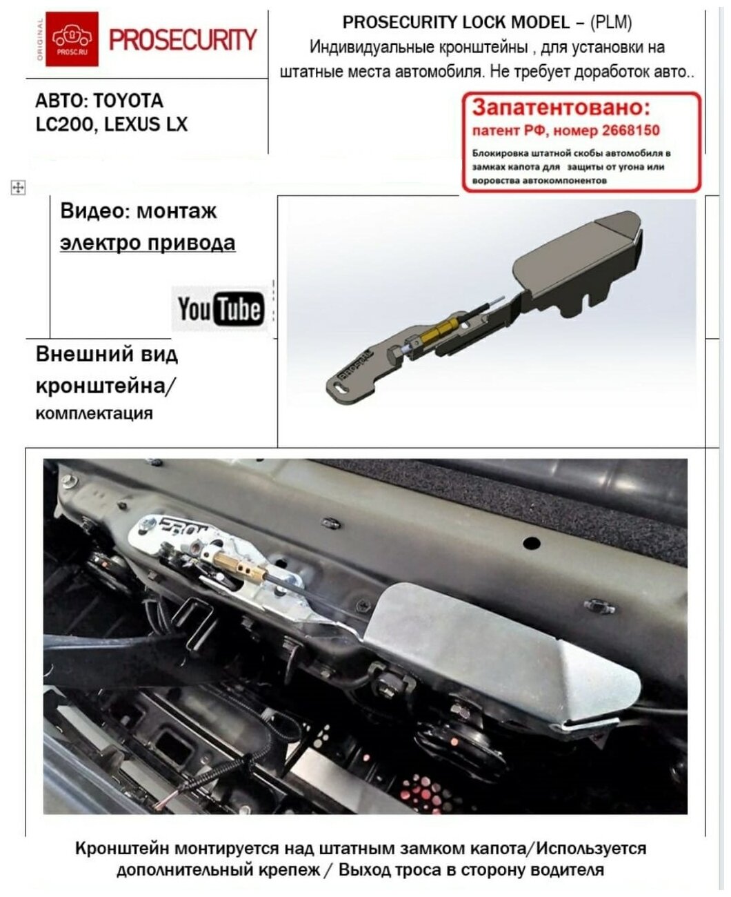 Отзывы на Замок капота Prosecurity Lock 5206 электро Toyota Land Cruiser 200, Lexus LS, LX, Rx-350h .