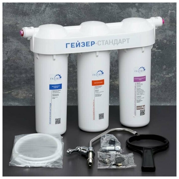 10 цен на Водоочиститель Гейзер Стандарт для жесткой воды/Фильтр для воды Гейзер Стандарт с краном