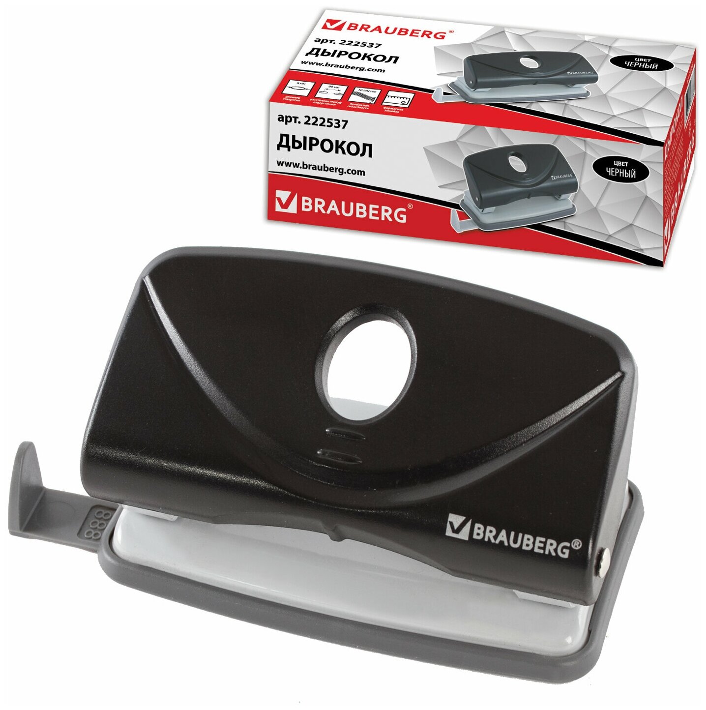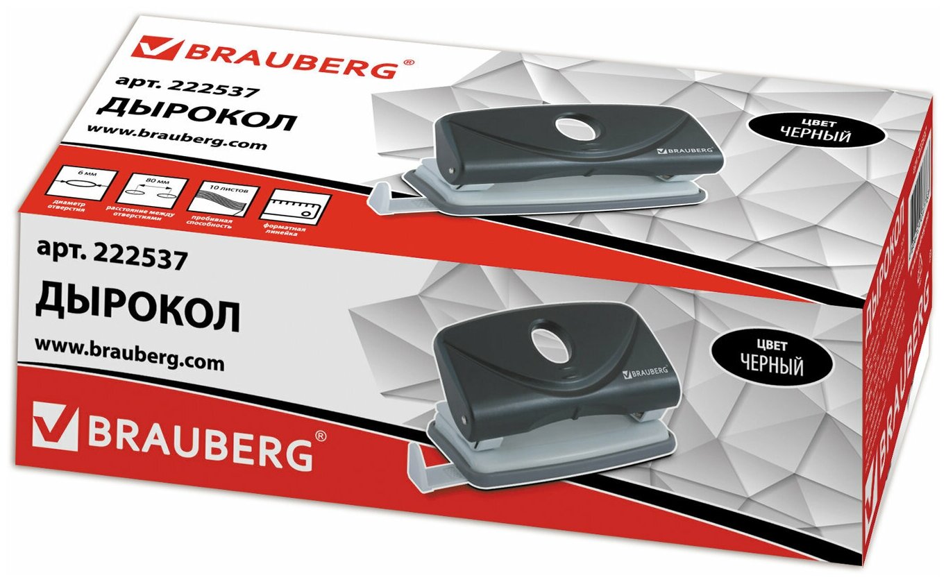 Дырокол BRAUBERG "Original", до 10 листов, черный, 222537 В комплекте: 1шт.