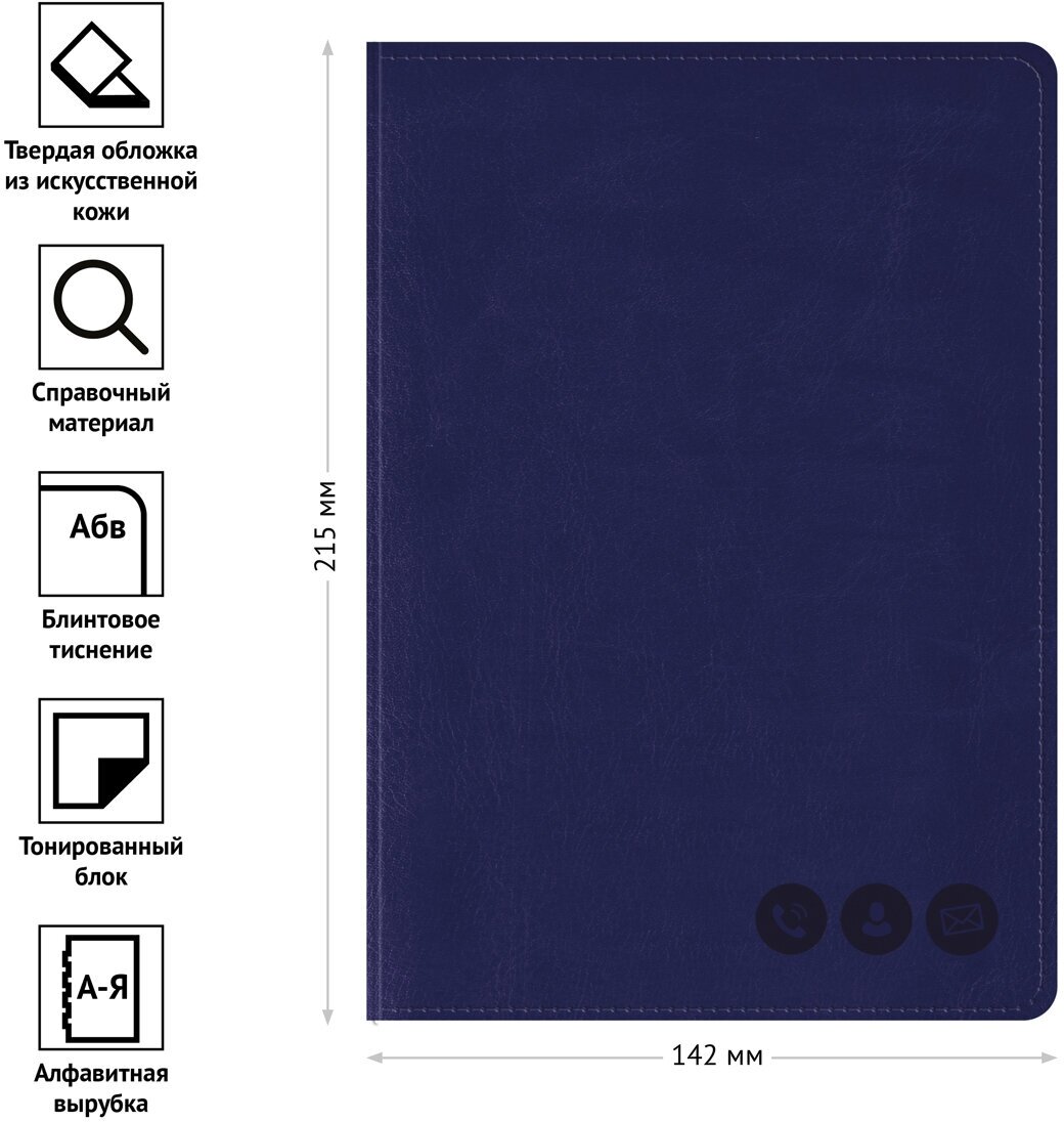 Телефонная книга А5, 80л., кожзам, OfficeSpace "Nebraska" темно-синий, с вырубкой, 326519 686 ₽