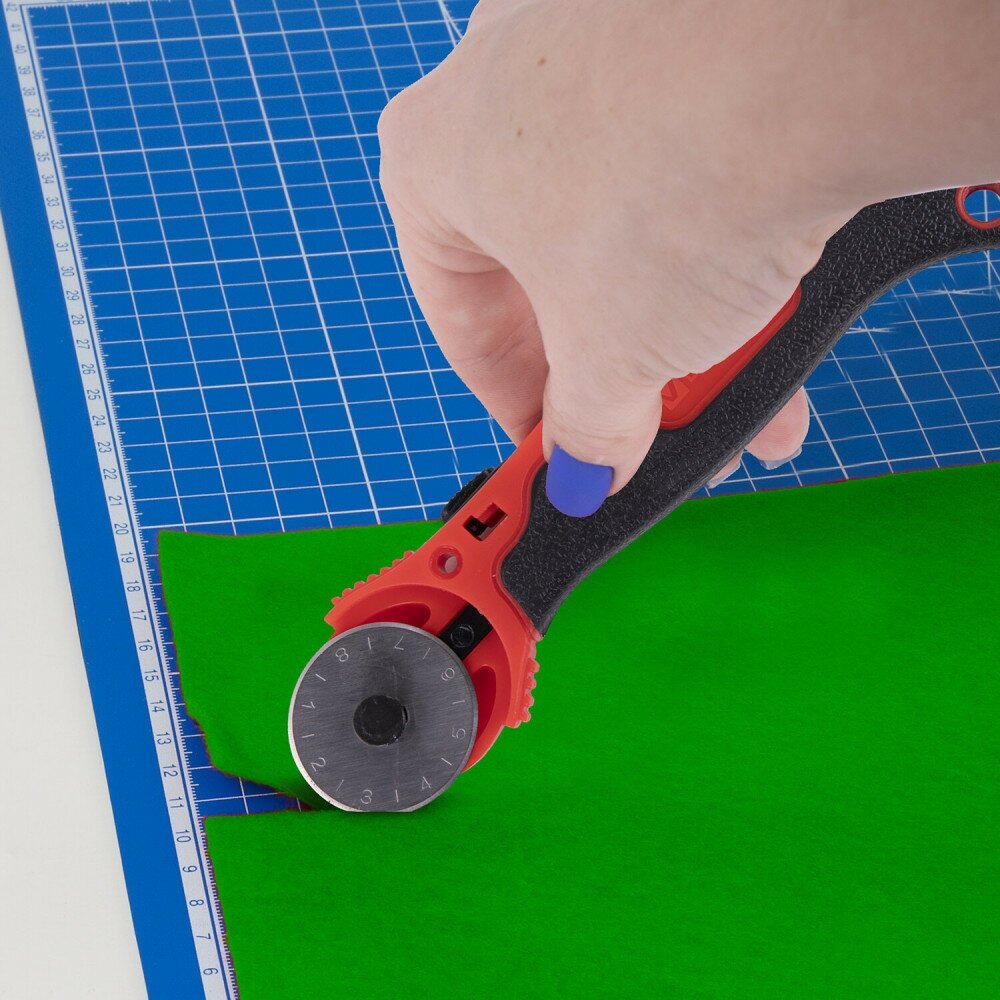 Нож раскройный роликовый канцелярский для рукоделия, досуга, творчества и шитья 28 мм Brauberg, круглое лезвие, резиновые вставки, 238089