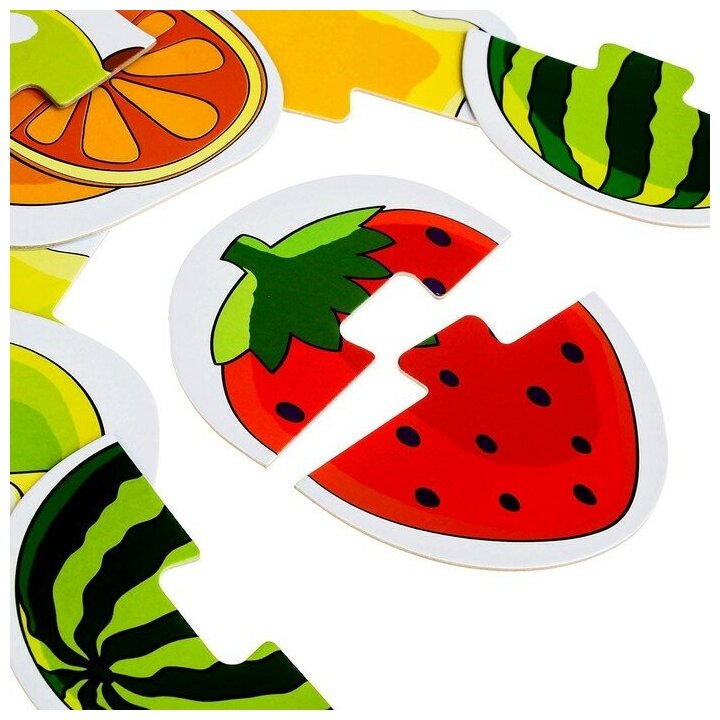 Детский напольный пазл "Фрукты и ягоды" малый, картинки-половинки для малышей, 12 деталей из картона