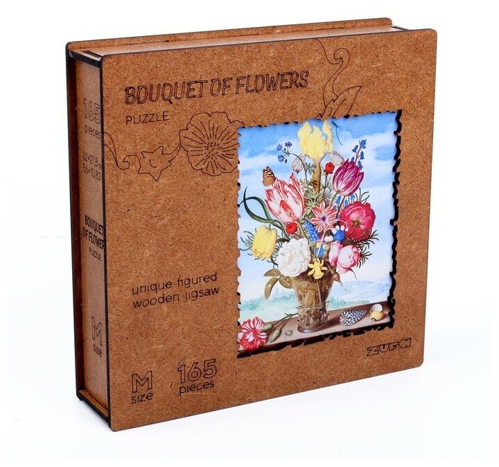 Деревянные пазлы для взрослых и детей Zufa / Подарок женщине, подарок маме, подарок подруге / Развивающие игрушки / Букет М - 165 деталей 27,5х22 см