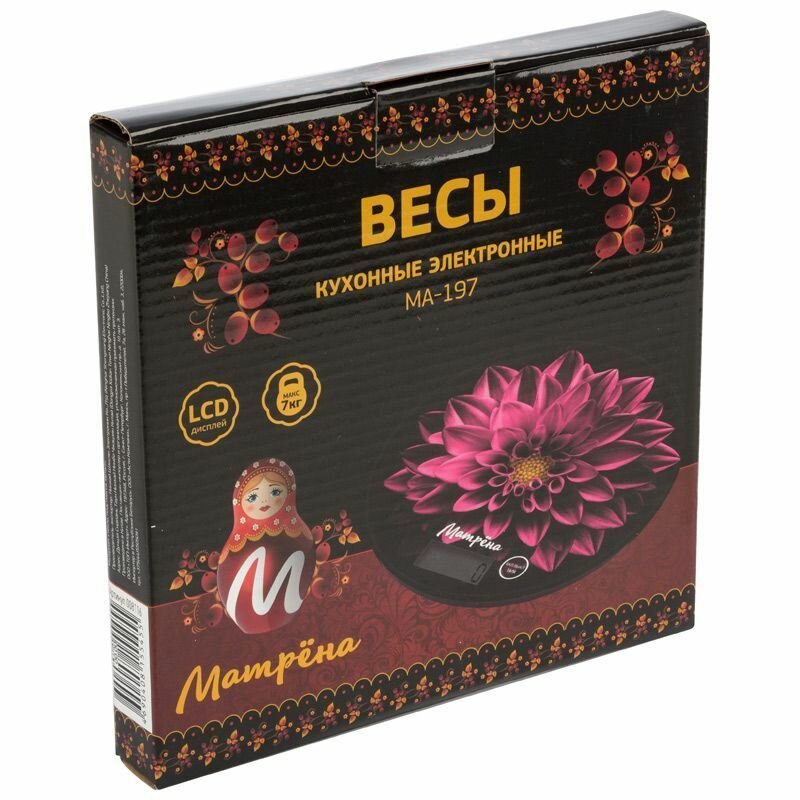 Весы кухонные электронные матрёна МА-197, 7 кг, пурпурный цветок информация: