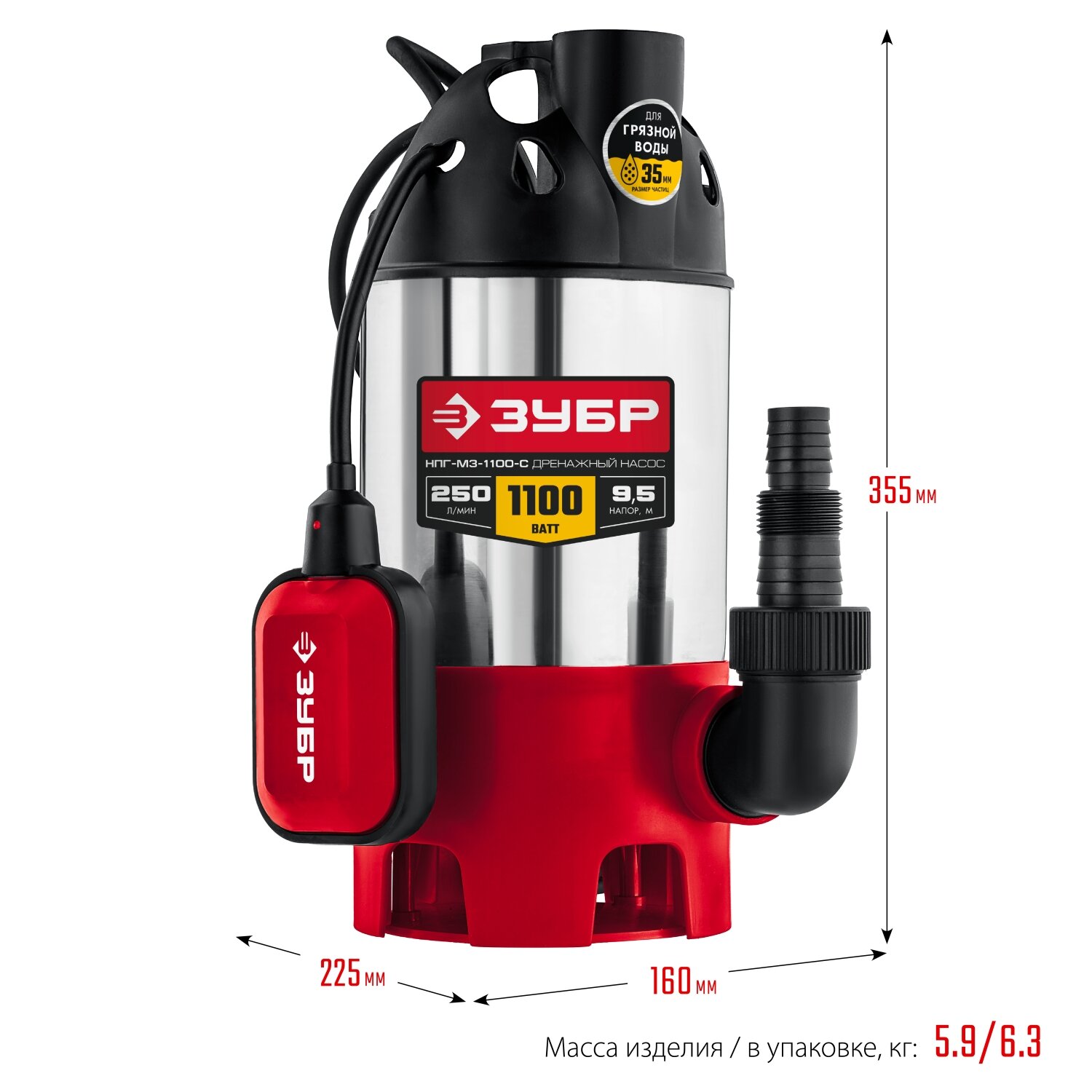 ЗУБР 1100 Вт, дренажный насос для грязной воды, корпус - нерж. сталь (НПГ-М3-1100-С) информация: