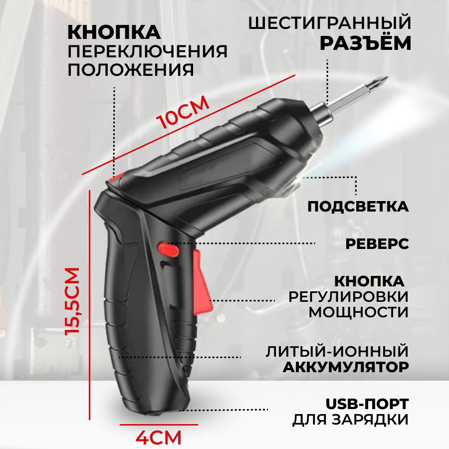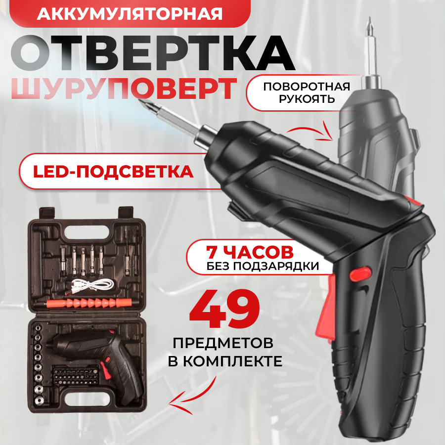 Аккумуляторная отвертка набор 49 предметов в комплекте /Электроотвертка/Электрическая отвертка/Электроотвертка аккумуляторная информация: