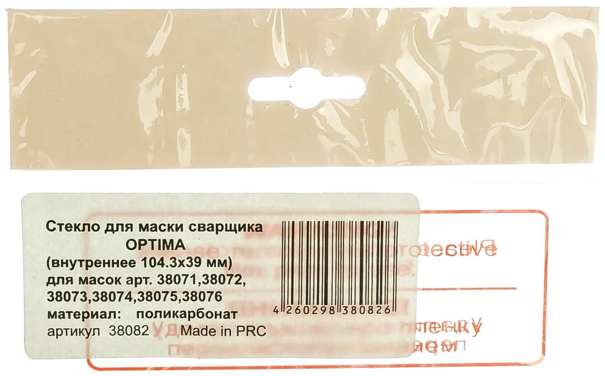 Стекло для маски сварщика OPTIMA (внутреннее 104.3х39 мм) для масок 38071,38072,38073,38074,38075,38076