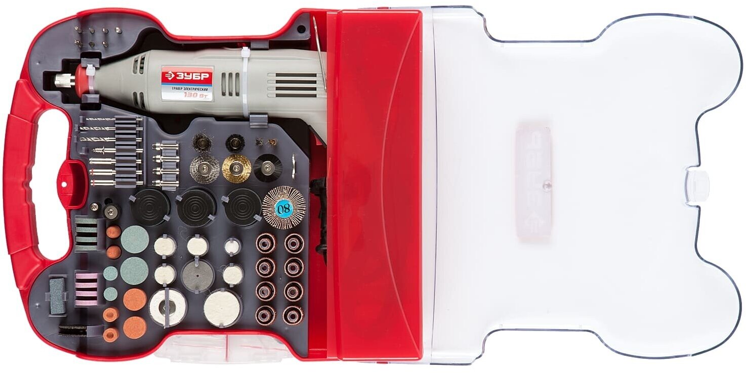 Электрический гравер ЗУБР с набором мини-насадок, 172 предмета ЗГ-130ЭК H172