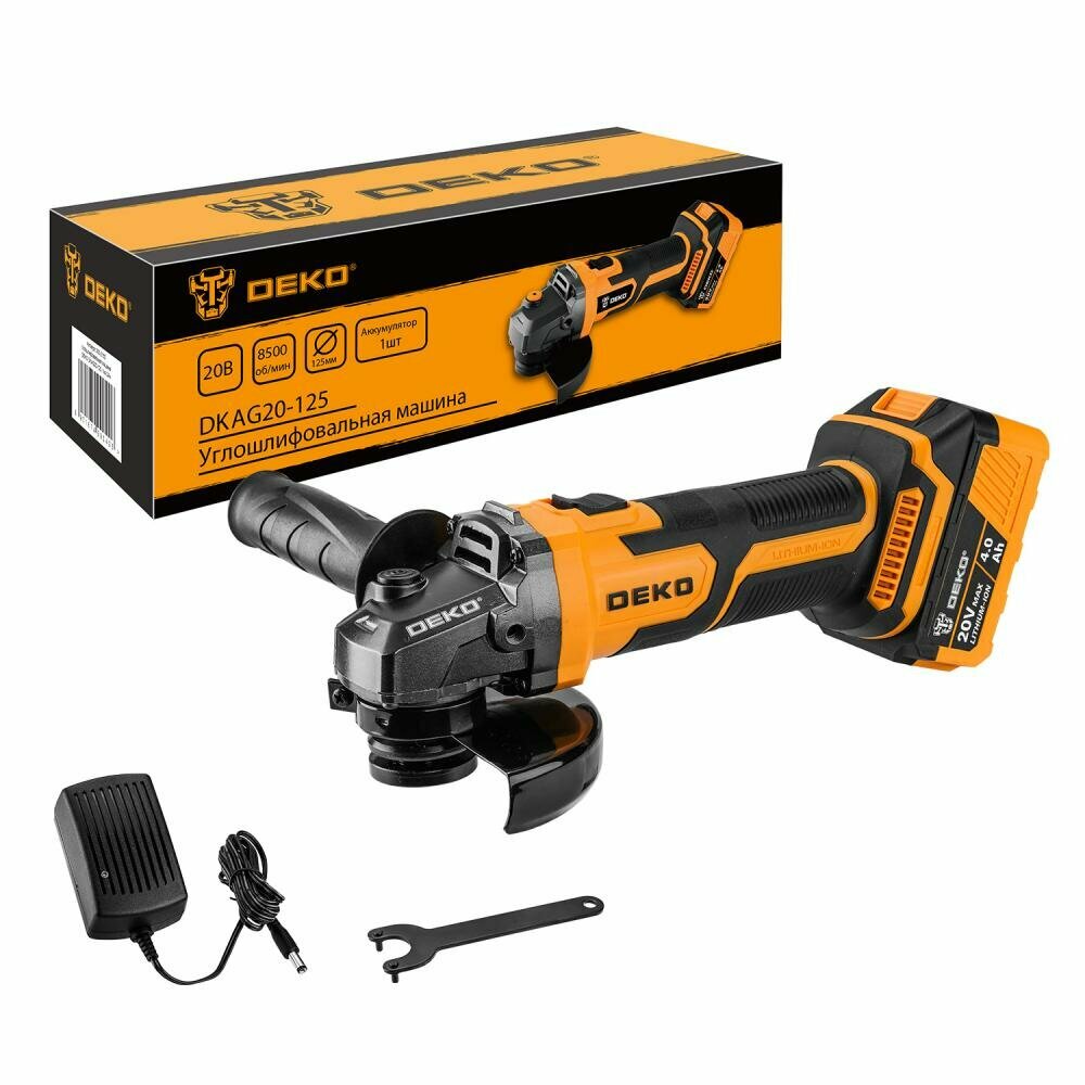 Аккмуляторная угловая шлифмашина Deko Dkag20-125, 20 В, 2х4 Ач, Li-Ion, d=125х22.2 мм Deko 9201884