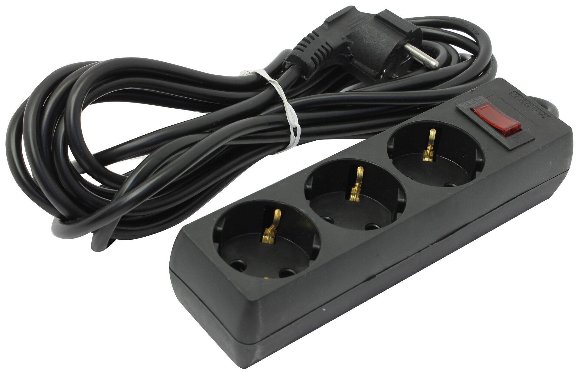 Сетевой фильтр ExeGate Sp-3-5b 3 евро с заземлением, 5м, выключатель с подсветкой, черный 221182 .