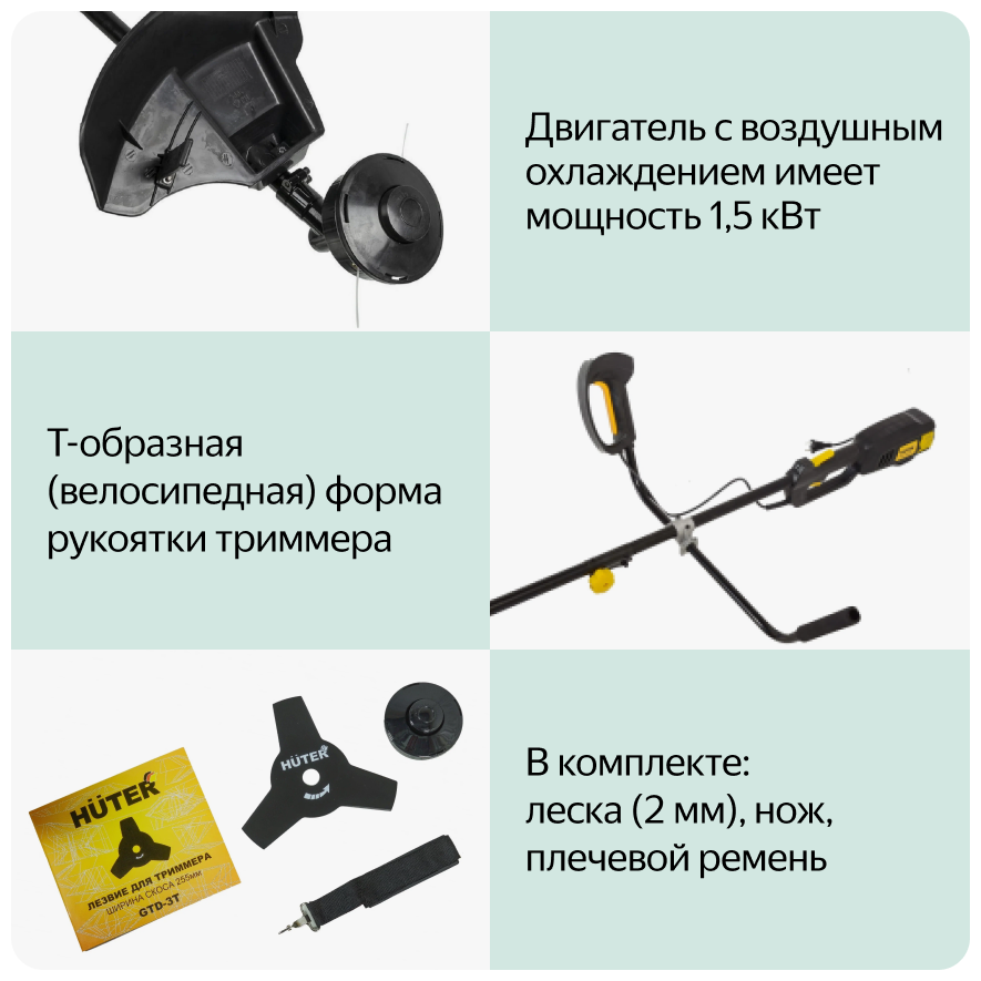 Триммер электрический HUTER GET-1500B, 1500 Вт, велосипедная рукоятка 9 276 ₽