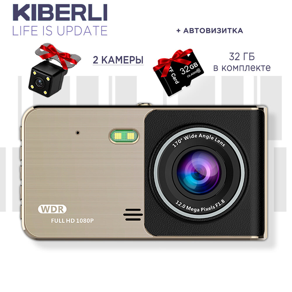 Автомобильный видеорегистратор S&H Electronics с камерой заднего вида датчик движения G-сенсор 2 камеры TF-карты на 32 Гб автовизитка табличка с номером