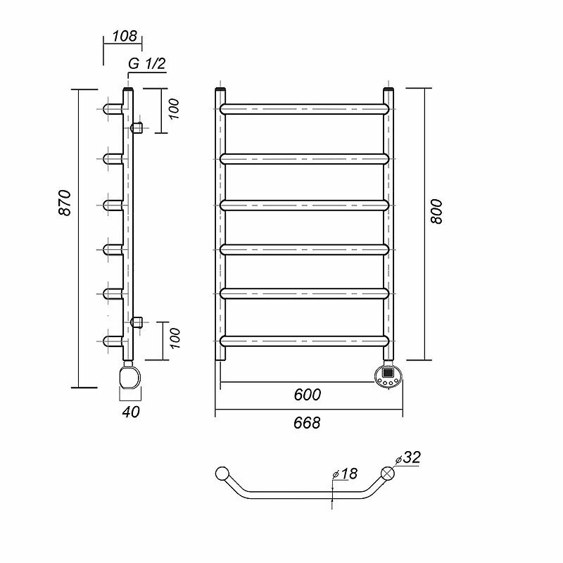 Полотенцесушитель электрический Domoterm Лаура П6 600х800 ER