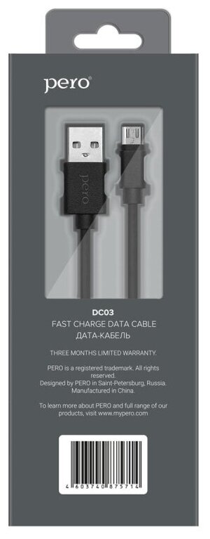 Аксессуар Pero DC-03 USB - microUSB 2А 2m PRDC-03MU2MB Black информация: