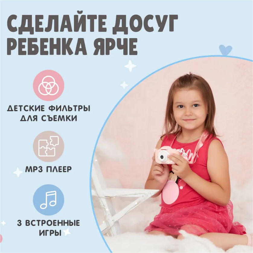 0 отзывов, средняя оценка 0. Чтобы купить «Детский фотоаппарат "Котик" розовый» по лучшей цене мы сканируем авито, алиэкспресс, маркет, озон, савеловский, плеер, горбушку, беру, официальные сайты и находим минимальную. Администрация не несет ответсвенность актуальность цен на Детский фотоаппарат "Котик" розовый, более подробно узнавайте на сайте магазина.