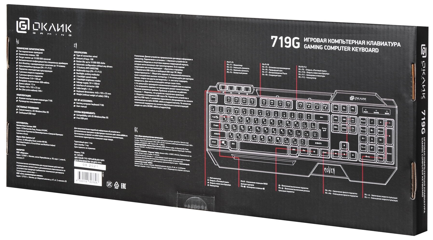 Клавиатура OKLICK COVEN 719G RGB черный.., английская/русская (ISO) информация: