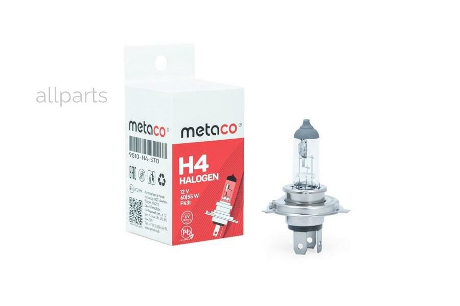 Лампа 12V H4 60/55W P43t Metaco 1 Шт. Картон 9510-H4-Std METACO арт. 9510-H4-STD