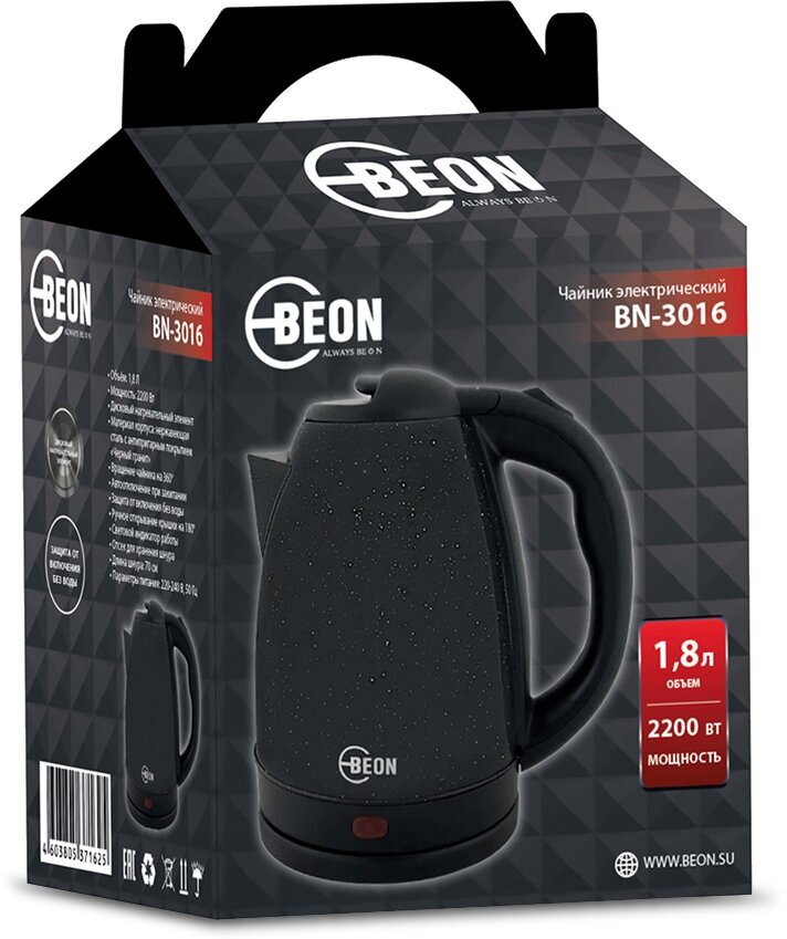 Чайник электрический BEON BN-3016, 1.8л, 2200Вт информация: