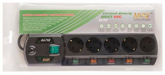 10 цен на Сетевой фильтр Most ERG 2м (5 розеток) черный (коробка)