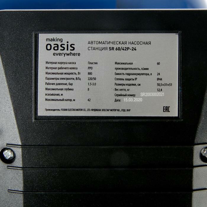 Насосная станция Oasis "making Оasis everywhere" автоматическая 60/42P - 24
