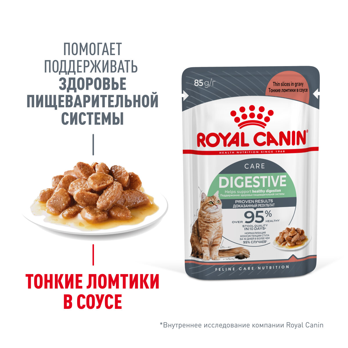 корм для кошек Royal Canin Digest Sensitive, при проблемах с ЖКТ, при чувствительном пищеварении 85 г (кусочки в соусе)