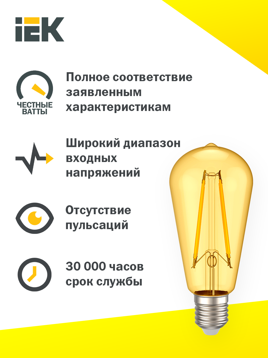 Отзывы на Лампа LED ST64 золото 8Вт 230В 2700К E27 серия 360°, IEK LLF-ST64-8-230-30-E27-CLG (1 шт.)