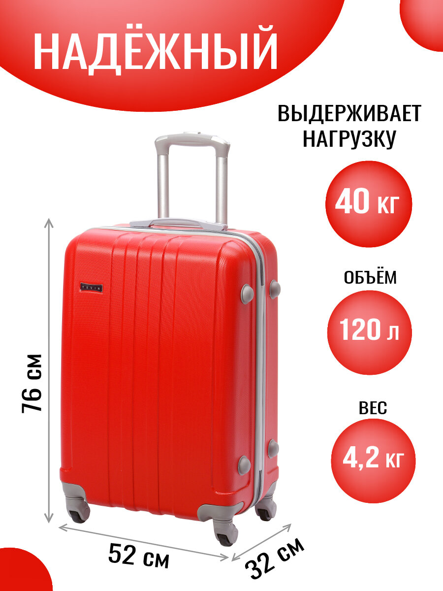 Чемодан на колесах дорожный большой семейный багаж, для путешествий женский l+ TEVIN размер Л+ 76 см xl 120 л xxl легкий, прочный abs пластик Красный информация:
