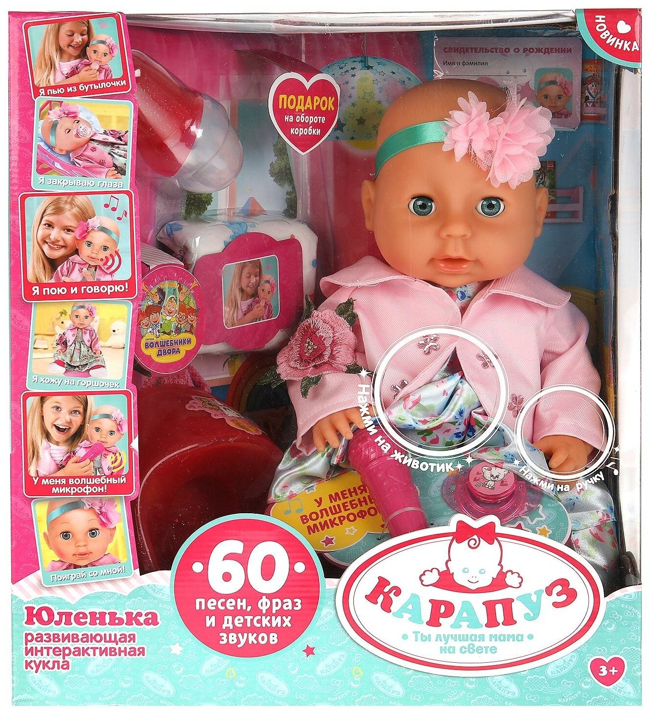 Пупс интерактивный Юленька, 40 см, пьет и писает, с аксессуарами информация: