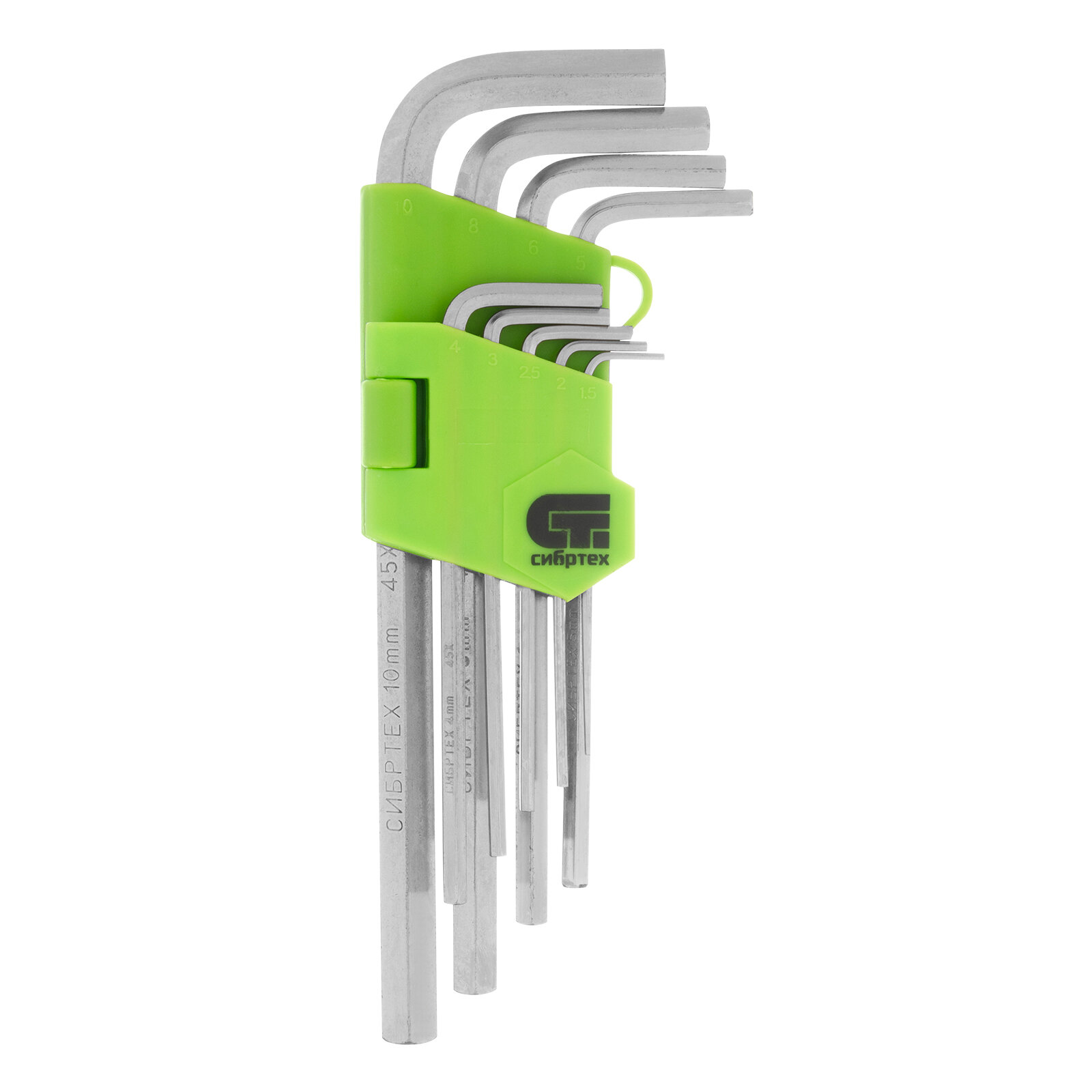 10 цен на Набор ключей имбусовых HEX, 1.5-10 мм, 45x, закаленные, 9 шт, удлиненные, никель Сибртех (12318)