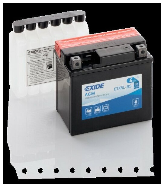ETX5L-BS EXIDE Аккумулятор MOTO AGM 4Ah 70A 113x70x105 полярность ETN 0 токовыводы M04