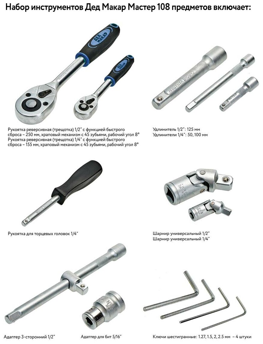 Набор инструментов Дед Макар Мастер 108 предметов МР-108 3 00-00015132 информация: