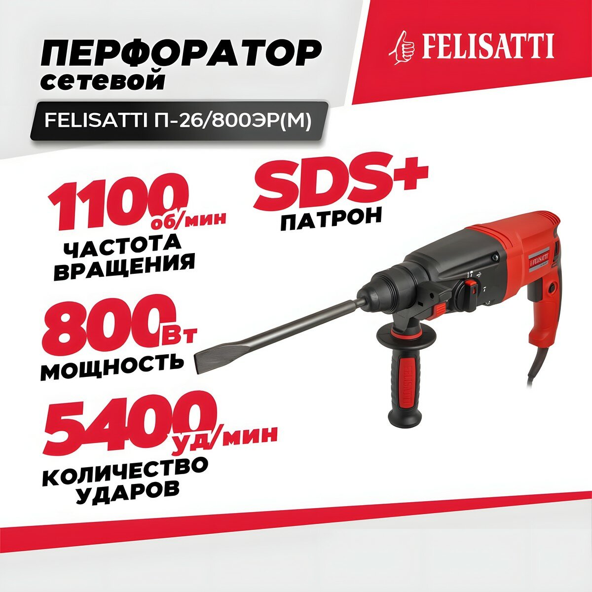 Перфоратор Felisatti П-26/800ЭР(М) SDS+ (со съемным патроном)