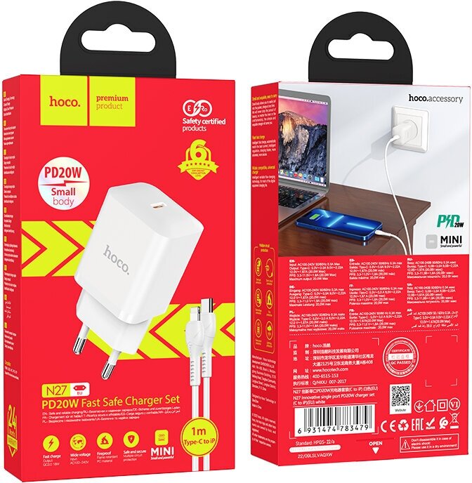 Зарядное устройство Hoco N27 Innovative USB-C PD20W + Кабель Type-C to Lightning 1 m, Черный