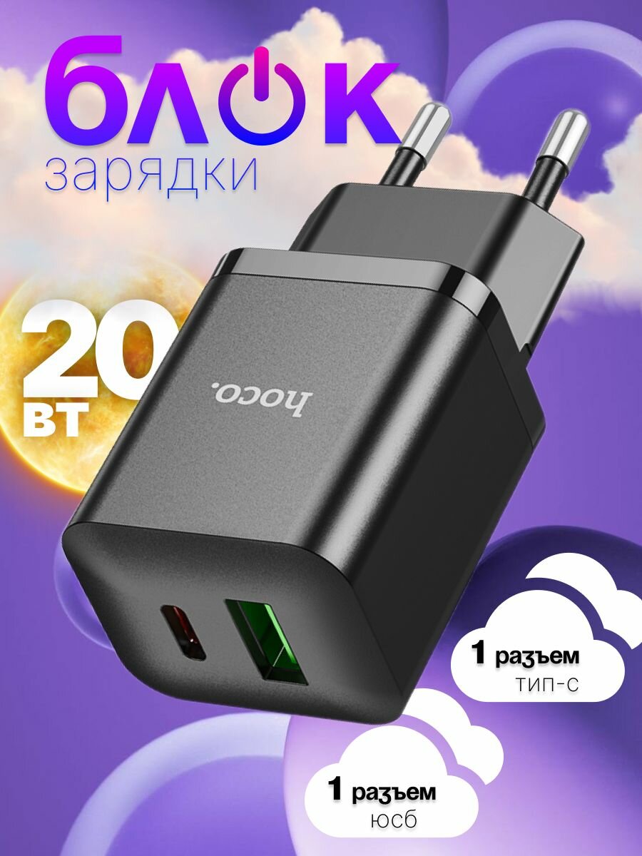 Сетевое зарядное устройство HOCO N28 USB-A, USB-C, 20W "быстрая зарядка", черный 669 ₽