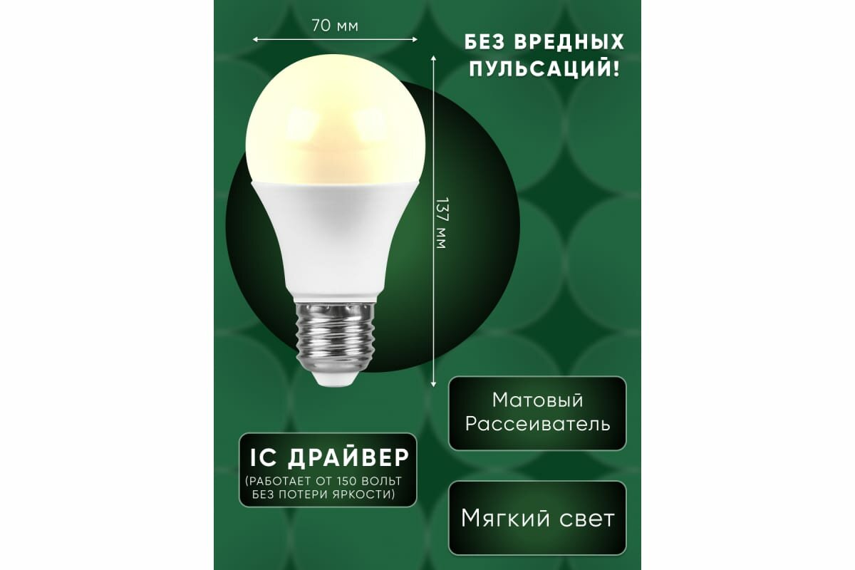 Лампочка светодиодная шар E27/A70 35Вт 3150Лм белый теплый 2700К, 55197